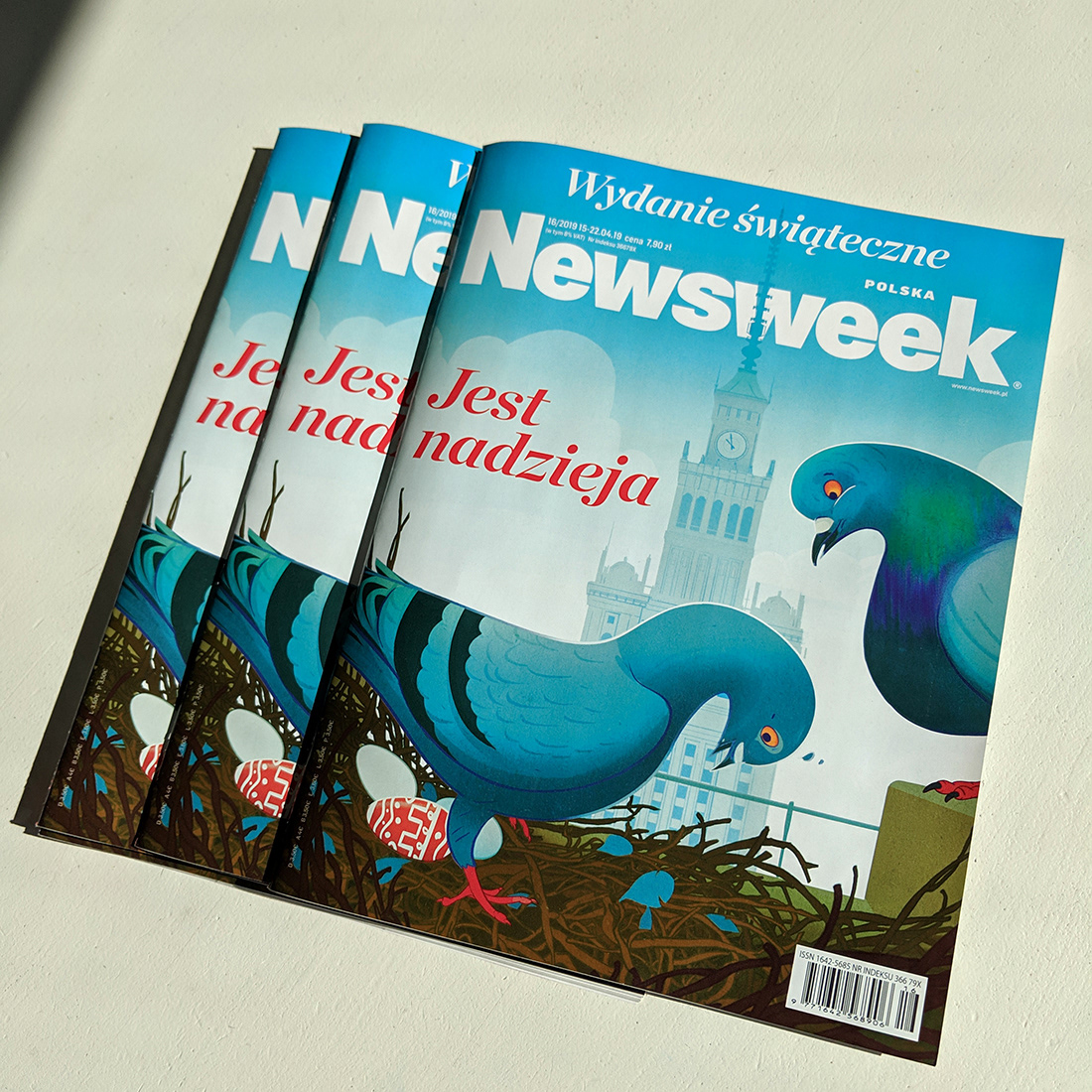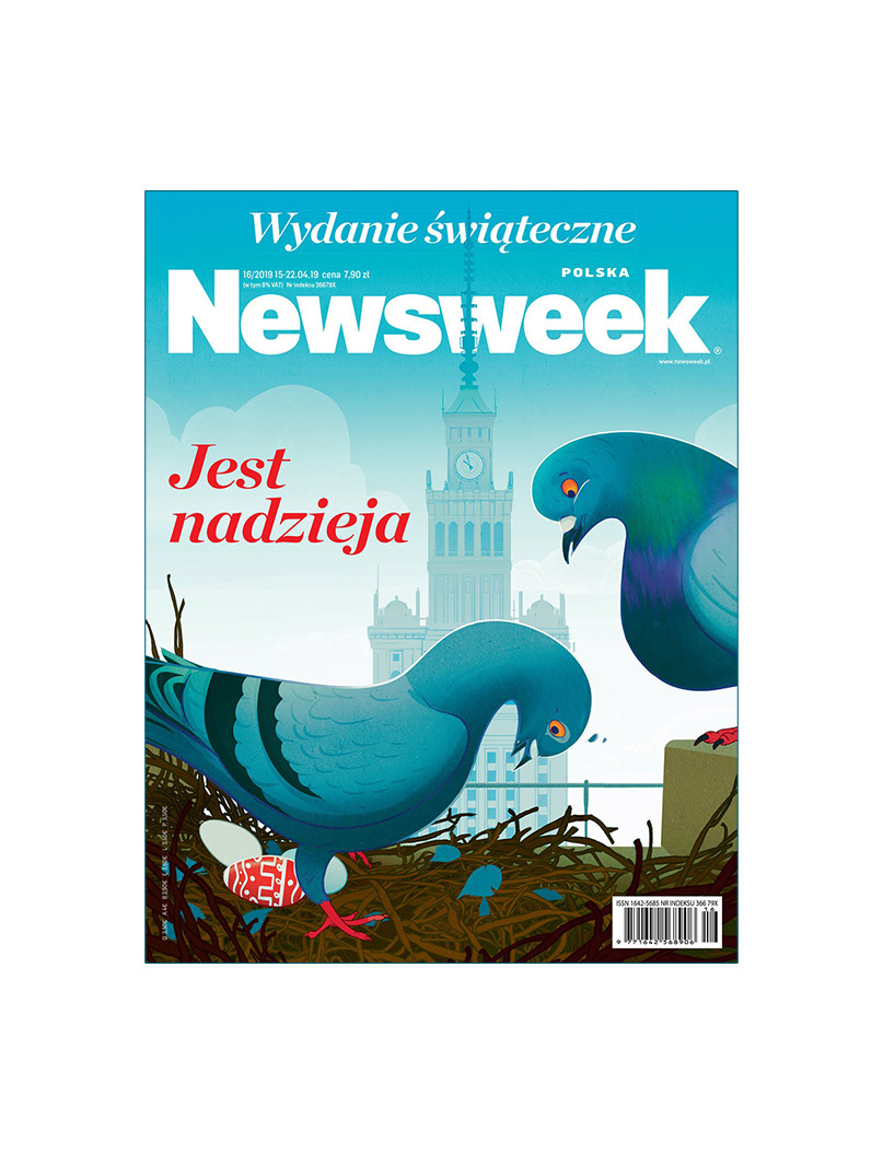 Newsweek PL (16/2019) A cover illustration for the Easter issue. Iconic Palace of Culture and Science is in the background. Art Direction: Magdalena Mamajek-Mich.