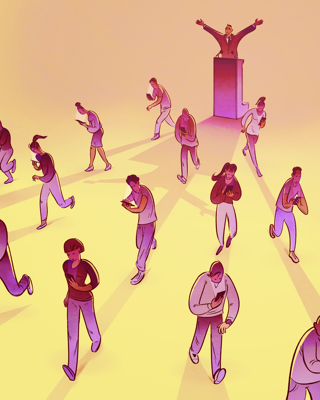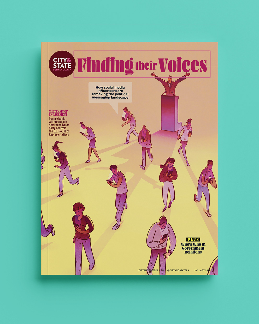City & State Pennsylvania (January 2026). Cover illustration. The role of social media influencers in politics – and how that affects voter turnout and voters tuning out. AD: Aaron Aniton