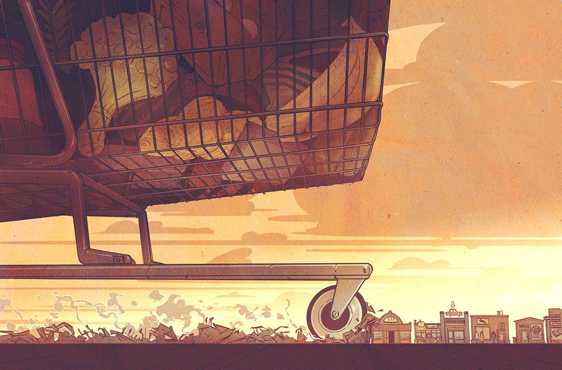 Newsweek PL (12/2019) Double-spread illustration for opening of the business section. For an article about changes in Polish law regarding commercial Sundays and the resulting effect. AD: Magdalena Mamajek-Mich