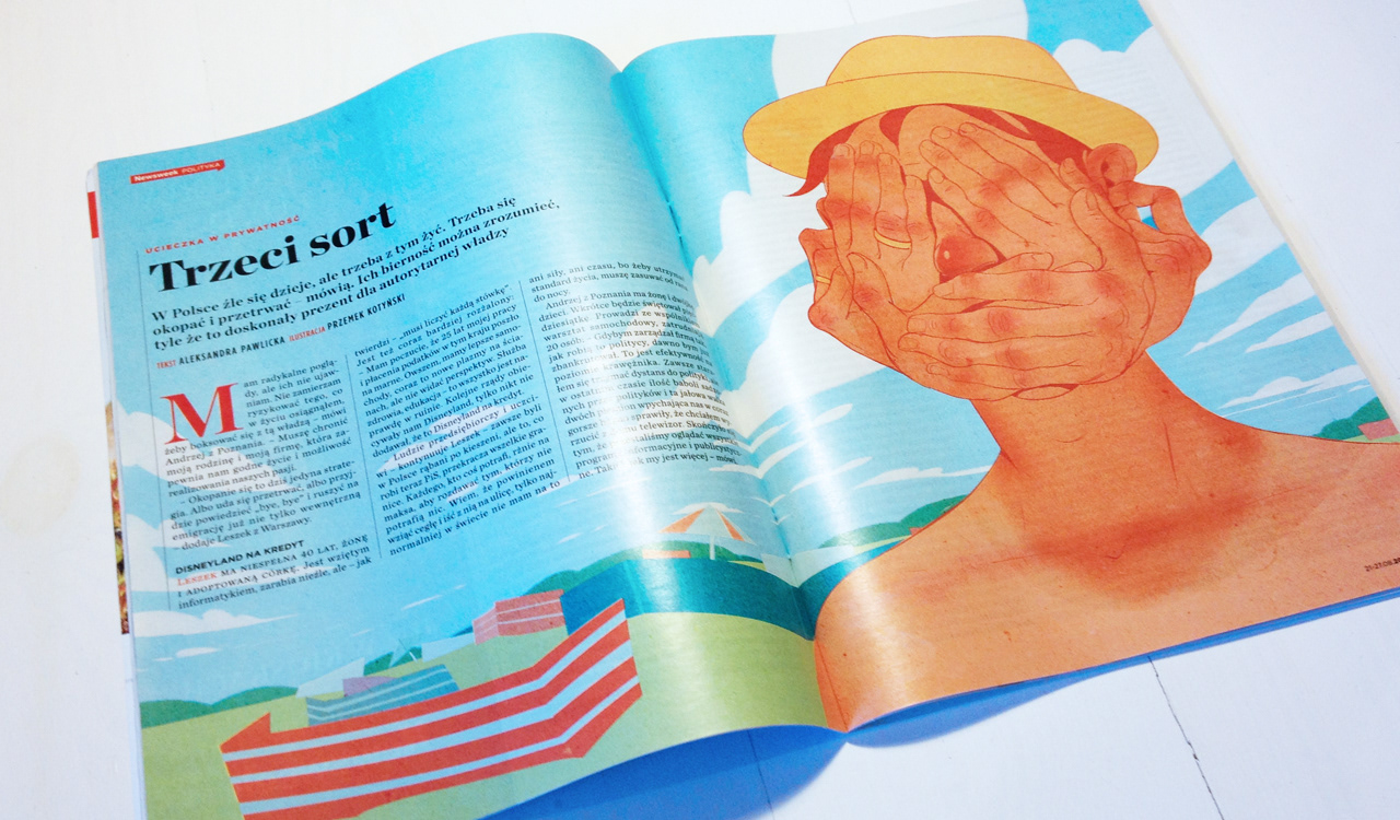 Newsweek (35/2017) Article by Aleksandra Pawlicka about current state of mind of many people who are tired of seeing, hearing, and talking about politics. AD: Magdalena Mamajek-Mich