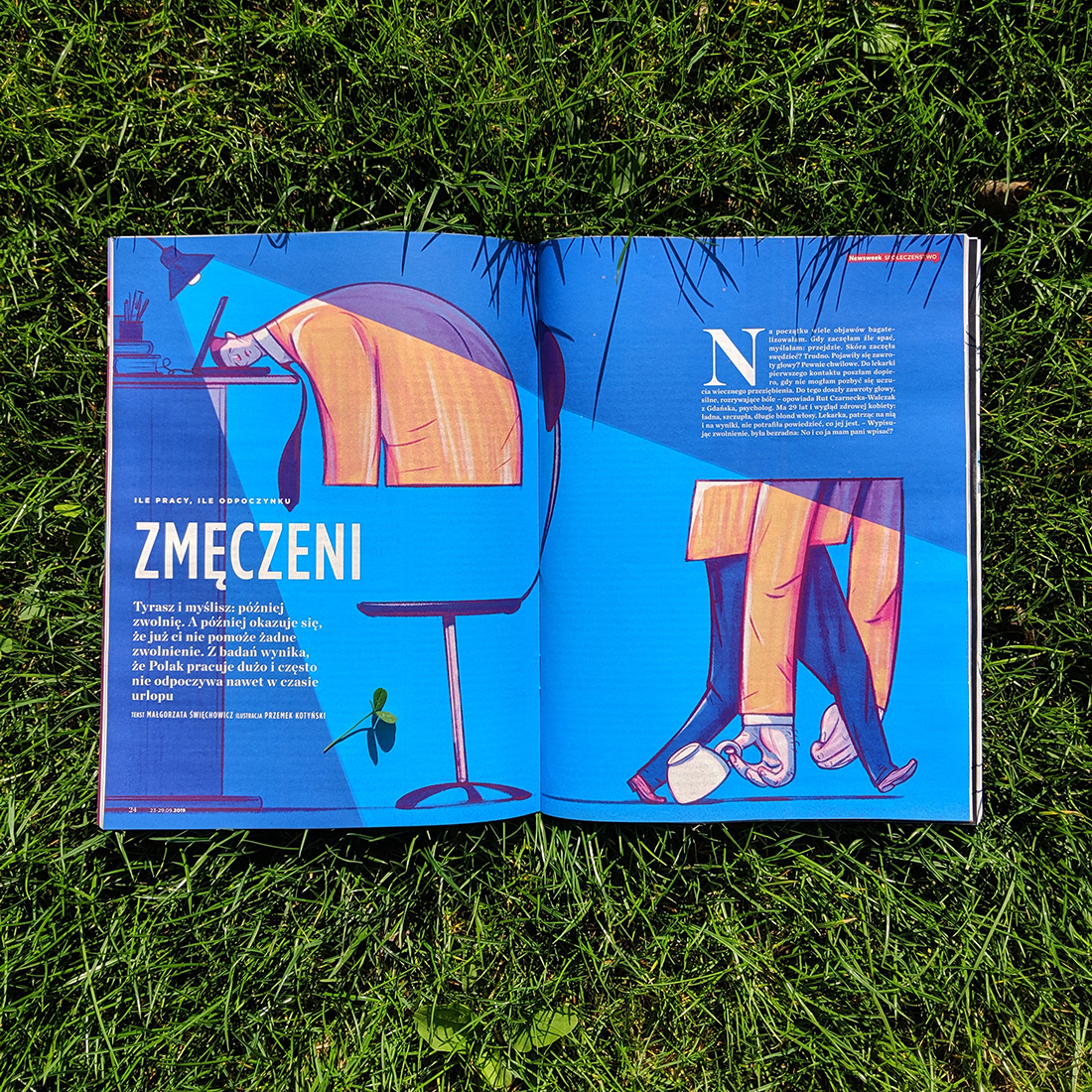 Newsweek PL (39/2019) Double page spread illustration for opening of the society section. For an article by Malgorzata Swiechowicz about common phenomenon of overworking. AD: Magdalena Mamajek-Mich